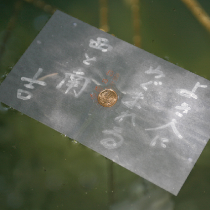 イナタヒメノミコトが姿を映したといわれる「鏡の池」は、占い和紙にコインを乗せて池に浮かべる恋占いで有名。