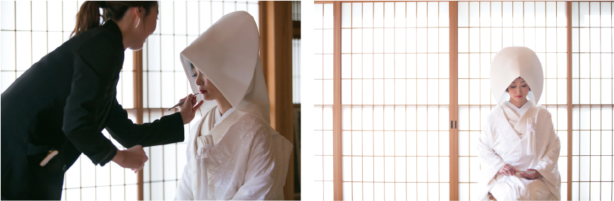 ●本殿内には両家各16名・最大32名まで列席可。神社内に親族控室、着付室などの設備もあります。